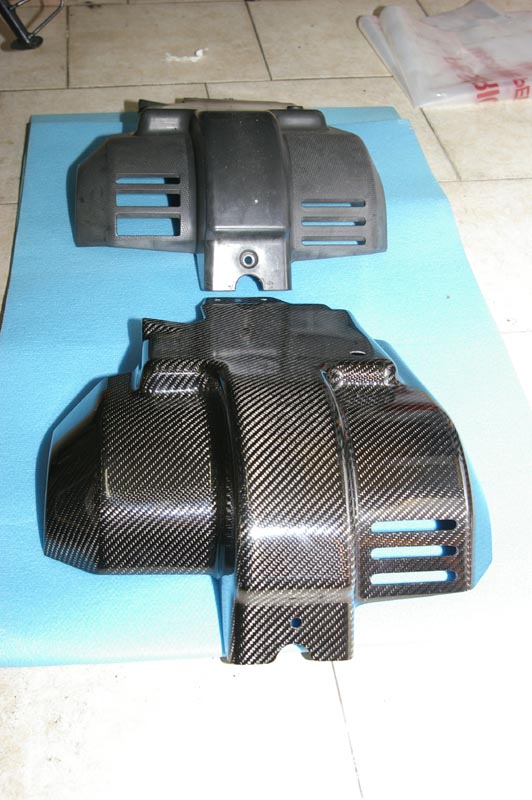 Queste due foto per notare le differenze tra i due stampi: ovviamente mancano i tamponi distanziatori impossibili da stampare nel carbonio.